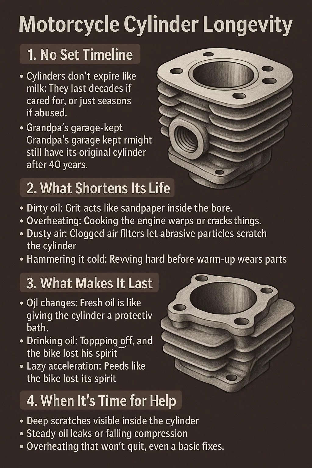 •할아버지의 차고에 보관된 자전거는 여전히 원래 실린더를 가지고 있을 수 있습니다. 자전거는 40년 후에도 여전히 원래 실린더를 가지고 있을 수 있습니다. 방치된 먼지 자전거는 5에서 작업이 필요할 수 있습니다.